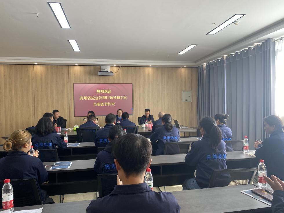 2023年11月1日,贵州省应急厅规财处主任刘萍、张文、专家张颂业、孟絮屹一行到我公司开展监督检查工作。公司董事长张鹏、总经理刘振湘、技术负责人蒋远义、质量负责人黄荣举全程陪同。